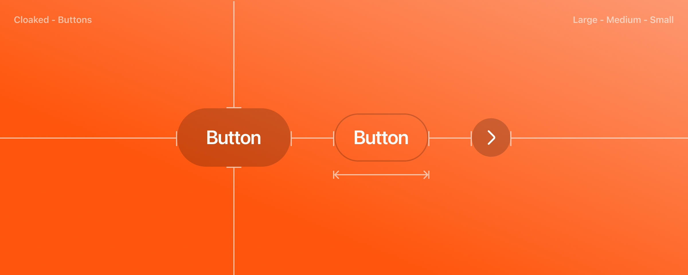 Buttons can change size and scaling behavior across different window sizes. On wide marketing surfaces, the primary CTA can stretch so wide it stops reading as a button — it looks like an empty banner. Constrain the width or pair it with other elements so the Cloaked pill shape stays visible.